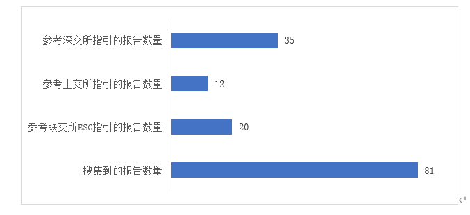 其中參考深交所指引的報(bào)告35份,上交所指引的報(bào)告12份,聯(lián)交所ESG指引的報(bào)告20份。