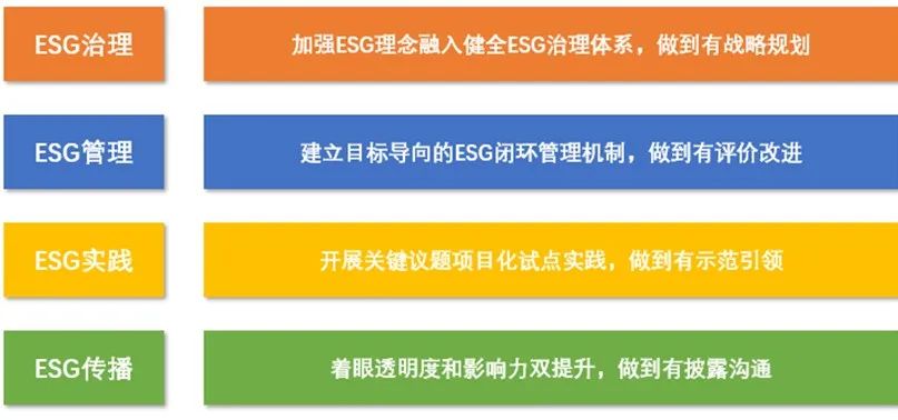 作為央企集團公司及控股上市公司,應從ESG治理、管理、實踐以及傳播等維度更好的搭建ESG管理體系,提升ESG實踐與傳播,全方位響應國資委關于ESG相關要求。