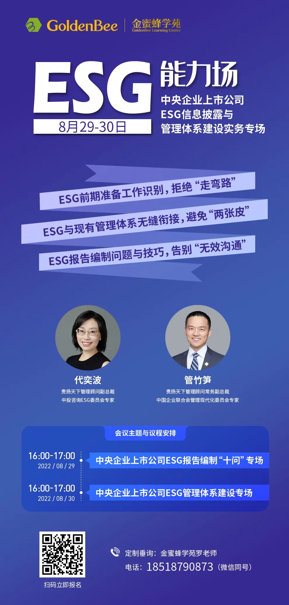 邀請函丨8月29-30日,中央企業(yè)上市公司ESG信息披露與管理體系建設實務專場