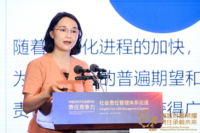國(guó)家電網(wǎng)公司黨組宣傳部(對(duì)外聯(lián)絡(luò)部)社會(huì)責(zé)任處曹英慧博士分享了國(guó)網(wǎng)的探索。曹博士提到,GB/T 39604的頒布,標(biāo)志著中國(guó)企業(yè)社會(huì)責(zé)任在歷經(jīng)14年探索和發(fā)展后,又回到了管理的原點(diǎn)。