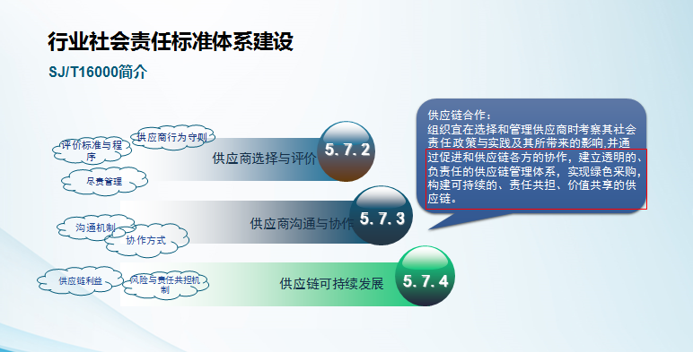第二,在這樣的變革當中,社會責任、可持續(xù)發(fā)展的這些規(guī)則的作用正在逐步強化、包括歐洲的綠色新政、負責任的商業(yè)行為、BSCI、BEPI、中電標協(xié)所設立的供應鏈相關的標準、社會責任的指南,助力這種綠色供應鏈的新的建設和轉型。